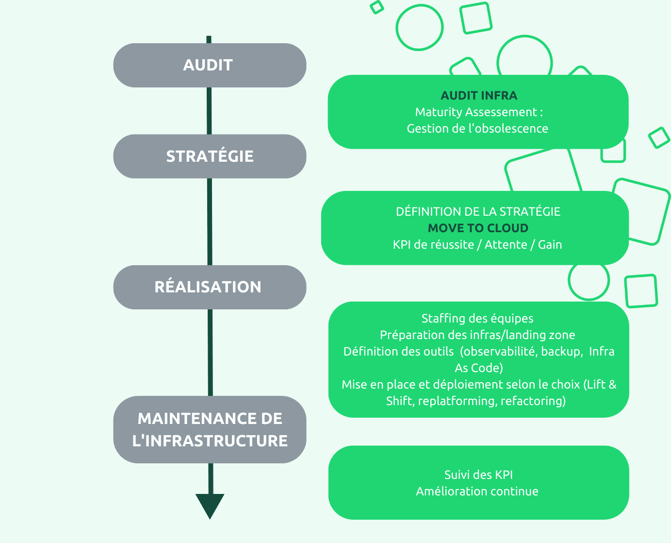 De la phase de cadrage au suivi des opérations, nos différents experts (FinOps, DevOps, Chefs de projets…) vous accompagnent.